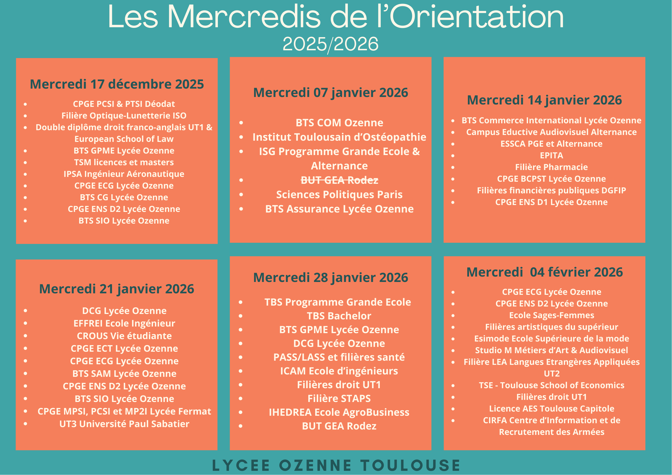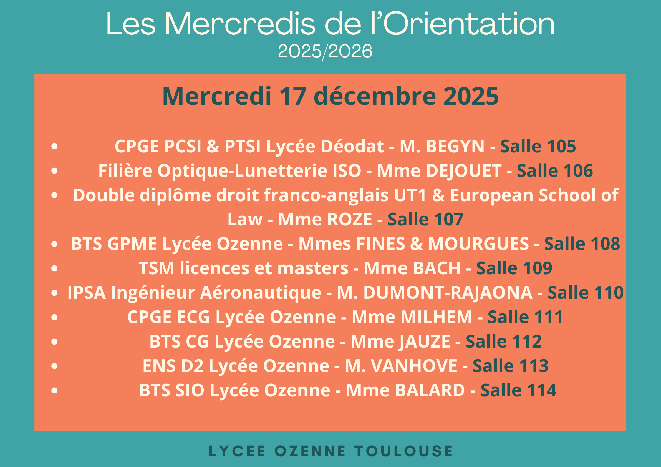 Le lycée Ozenne organise à nouveau cette année des mercredis de l’orientation.