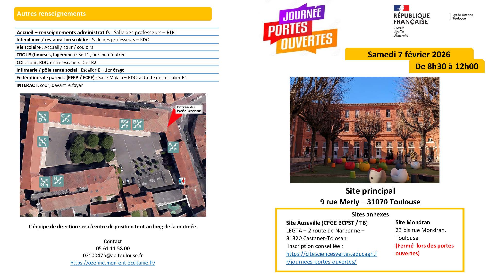 INFORMATION : IL N'EST PAS NECESSAIRE DE S'INSCRIRE POUR PARTICIPER AUX PORTES OUVERTES DU LYCEE OZENNE. L'ACCES EST LIBRE